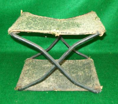 ANTIQUE IRON CARRIAGE FOLDING STOOL w/ covering