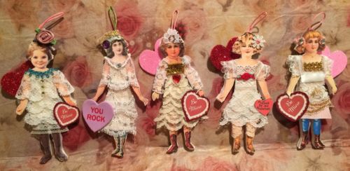 5 Vintage Style Valentine Altered Art Original Victorian Paper Doll Ornaments