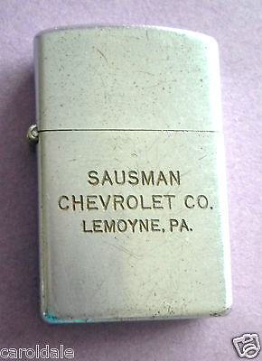 Title (ebay affiliate link): 1950's USED FLIP TOP LIGHTER SAUSMAN CHEVROLET LEMOYNE, PA CORVETTE DEALER