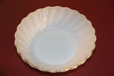 3 Vintage Fire King soup bowls - Anchor Hocking - white milk glass gold trim