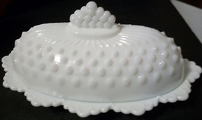 Vintage Fenton Hobnail Milk Glass Butter Dish 2 Pieces