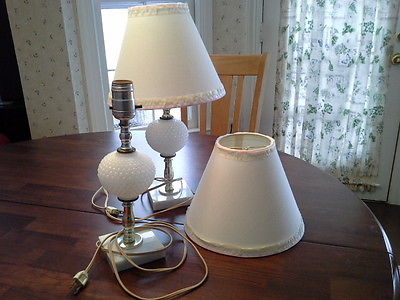 Title (ebay affiliate link): Vintage Pair Of Milk Glass Hobnail Table Lamps Boudoir Desk with marble base