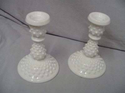 Title (ebay affiliate link): Fenton Hobnail Milk Glass Pair Candle Sticks 6" Tall Vintage