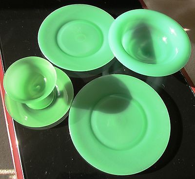 Green Opaque Milk Glass - 5 Pieces