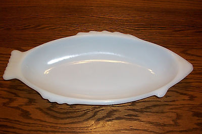 GLASBAKE MILK GLASS LARGE 18" SERVING BOWL FISH SHAPED WITH SCALES FINS FISH FRY