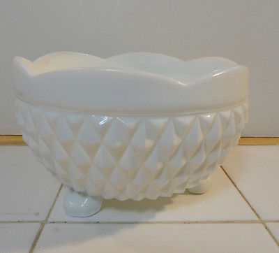 Title (ebay affiliate link): Vintage White Milk Glass 3 Footed Candy / Compote Bowl - Diamond Pattern
