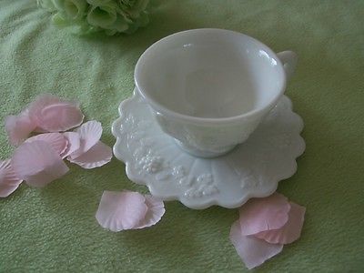Title (ebay affiliate link): Milk Glass Westmoreland Paneled Grape 4 pieces ~ 2 Cups & 2 Saucers