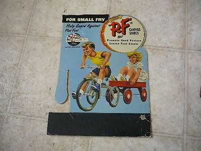 Title (ebay affiliate link): Vintage 1950s Store Display Sign Hood PF Canvas Shoes Tricycle Wagon Boy Girl