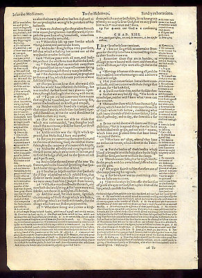 1609 Geneva Roman Letter Bible Leaf/HEBREWS 13/HE WILL NEVER LEAVES OR FORSAKE!