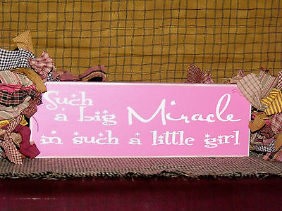 Primitive Country Shelf Sitter Sign.."Such A Big Miracle In Such A Little Girl"