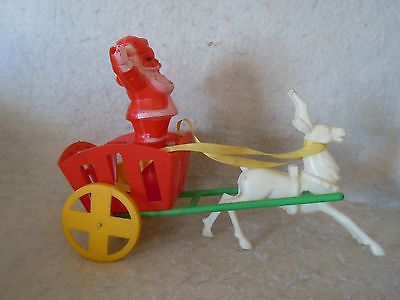 VINTAGE HARD PLASTIC SANTA IN SLEIGH WITH DEER ON WHEELS CANDY CONTAINER