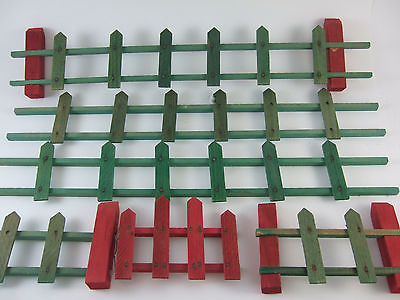 Vintage Red Green Wood Christmas Feather Putz Tree Snow Fence