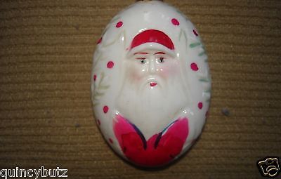 ANTIQUE LARGE MILK GLASS CHRISTMAS SANTA LIGHT BULB ORNAMENT BLOWN OUT MOLD