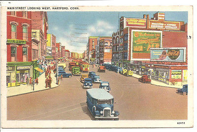 HARTFORD, CT - Main Street, West, Bus, Trolley, Cars, Trucks, CocaCola Sign, Sig