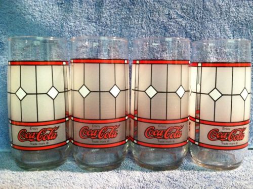 Title (ebay affiliate link): 4-VINTAGE Enjoy Coca-Cola Frosted Stained Vintage Drinking Glasses *Collectible*