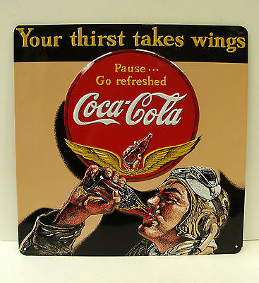 Title (ebay affiliate link): COCA COLA- YOUR THIRST TAKE WINGS EMBOSSED SIGN