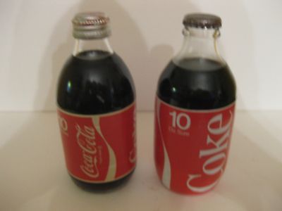 Title (ebay affiliate link): 2 1980's Glass Coca-Cola 10oz Bottles 1 Twist off 1 Pry off Cap