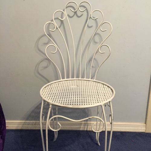 Title (ebay affiliate link): Vintage Wrought Iron Vanity Chair Mid Century Metal Hair Pin Leg-fan Back
