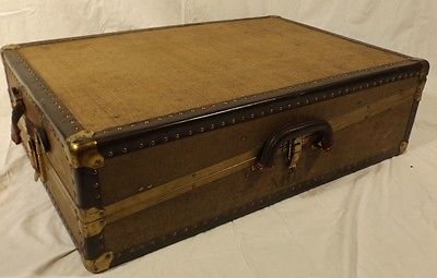 Title (ebay affiliate link): EARLY 1900s STEAMER TRUNK SUITCASE w LEATHER TRIM BRASS STUDDED GREAT CONDITION