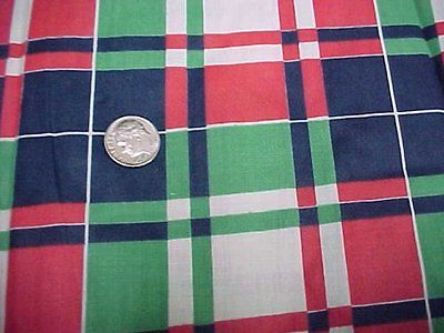 Vintage Antique Cotton Quilt Doll Fabric 36" Wide Red GREEN Navy Plaid Material
