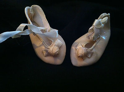 Title (ebay affiliate link): Vintage Antique Leather-ette Faux Leather 3" Doll Shoes with Silk Rose & Ribbons