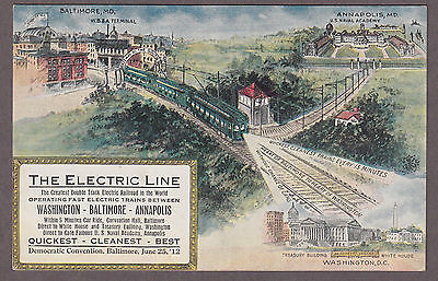 1912 Democratic Convention Baltimore Maryland Advertising Postcard Electric Line