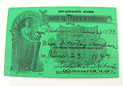 Title (ebay affiliate link): 1944 Washington DC House of Representatives Member's Pass | J X