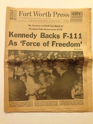 Title (ebay affiliate link): Kennedy Backs F-11 Fort Worth Press November 22, 1963