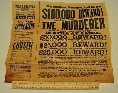 Title (ebay affiliate link): Reward Poster Print for capture of murderer of Abraham Lincoln 1865