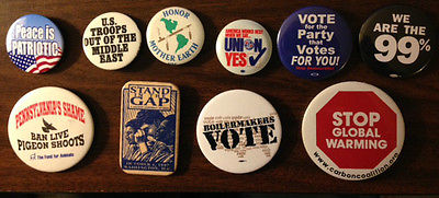 Title (ebay affiliate link): Nice Variety of 10 Cause and Social Issue Pinback Buttons