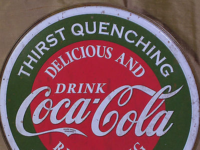 VINTAGE ANTIQUE OLD STYLE ROUND COCA COLA METAL TIN SIGN !!!