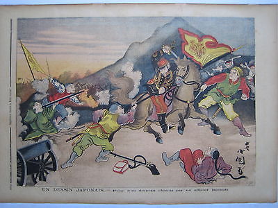 OLD PRINT ENGRAVING DRAWING 1894 CHINA KOREA COREA WAR OF JAPAN RUSSIA FLAG