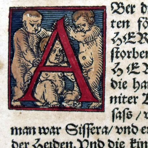 Title (ebay affiliate link): 1549 LUTHER Bible LEAF 2 WOODCUT PUTTI INITIALS ORIGINAL - SCARCE Book of Judges