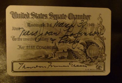 Title (ebay affiliate link): 1949 United States Senate Pass Rhode Island Theodore Francis Green Autograph NR
