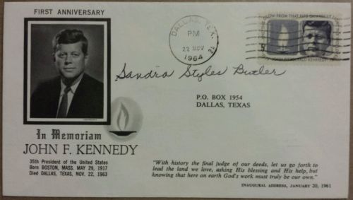 Title (ebay affiliate link): RARE KENNEDY ASSASSINATION ELM ST EYEWITNESS SANDRA STYLES SIGNED DALLAS FDC JFK