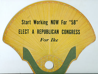 Title (ebay affiliate link): 1958 Working Now for IKE, Elect a Republican Congress Cardboard Fan