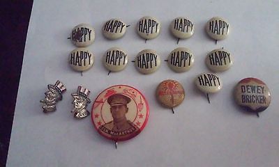 LOT OF 16 VINTAGE POITICAL BUTTON PINS - UNCLE SAM - HAPPY CHANDLER- MACARTHUR