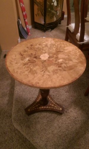 Title (ebay affiliate link): Antique Italian round inlay wood flowered accent table