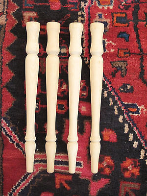 VTG TURNED WOOD LEGS SPINDLE SHABBY PINE SET OF 4 COUNTRY COTTAGE RUSTIC 14 3/8"