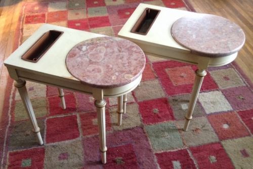 Title (ebay affiliate link): VINTAGE 1960's FRENCH PROVINCIAL END TABLES W/MARBLE & PLANT INSERTS, RARE/NICE