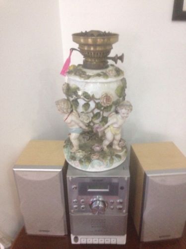 Title (ebay affiliate link): ANTIQUE SITZENDORF OIL LAMP CHERUBS PUTTI AND FLORAL DECOR CIRCA 1880