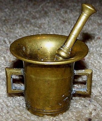 Title (ebay affiliate link): ANTIQUE SMALL SOLID BRASS MORTAR & PESTLE / APOTHECARY / PHARMACY