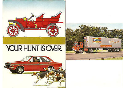 3 Old Post Cards:1907 Olds Palace Touring Car;Audi Fox;Dickies Tractor-Trailer