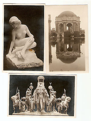 3 Panama-Pacific Expo PCs:Fine Arts Palace,"At the River",Nations of East Statue