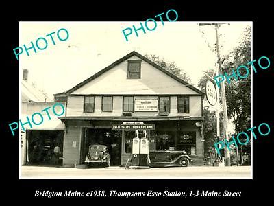 OLD LARGE HISTORIC PHOTO OF BRIDGTON MAINE, THOMSONS ESSO SERVICE STATION c1938