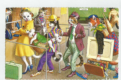 Title (ebay affiliate link): Alfred Mainzer Postcard Spain # 4735 - Cats Traveling - Bus Train Airport Line