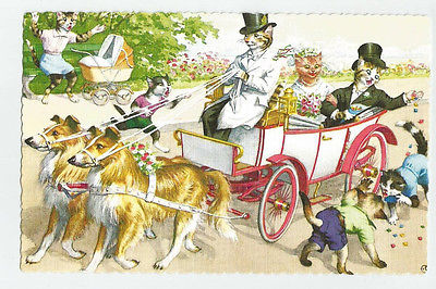 Title (ebay affiliate link): Alfred Mainzer Postcard Spain # 4920 Cat Wedding Bride Groom Dog Carraige Ride