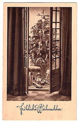CHRISTMAS FROHLICHE WEIHNACHTEN POSTCARD CANDLE LIT CHRISTMAS TREE DOLL TOYS B&W