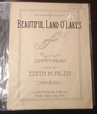 Title (ebay affiliate link): Vintage Litho sheet music sig.Publisher "Beautiful Land O' Lakes" E. Fales