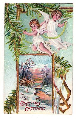 VINTAGE CHRISTMAS POSTCARD SWEET LITTLE ANGELS WITH GARLAND SERIES 30 E *GERMANY